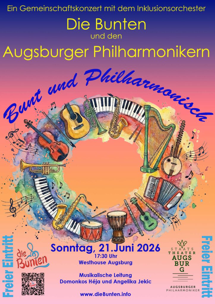 Erleben Sie eine Sternstunde der Musik, in der Grenzen verschwimmen und Spielfreude pur regiert! Das Inklusionsorchester „Die Bunten“ teilt sich die Bühne mit den Profis der Augsburger Philharmoniker. Ein besonderes Konzert, das zeigt, wie harmonisch Vielfalt klingen kann.