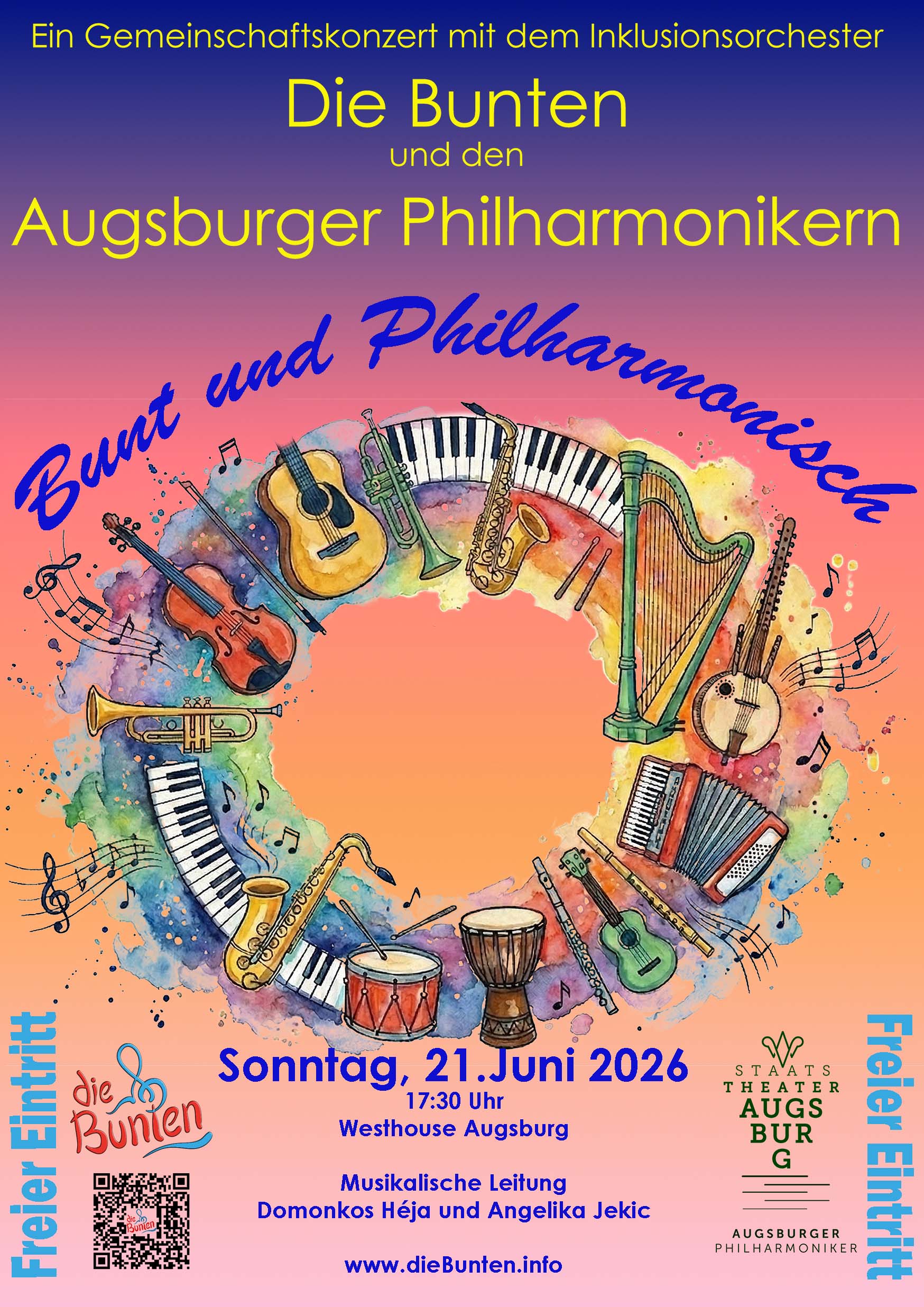 Erleben Sie eine Sternstunde der Musik, in der Grenzen verschwimmen und Spielfreude pur regiert! Das Inklusionsorchester „Die Bunten“ teilt sich die Bühne mit den Profis der Augsburger Philharmoniker. Ein besonderes Konzert, das zeigt, wie harmonisch Vielfalt klingen kann.