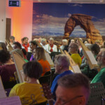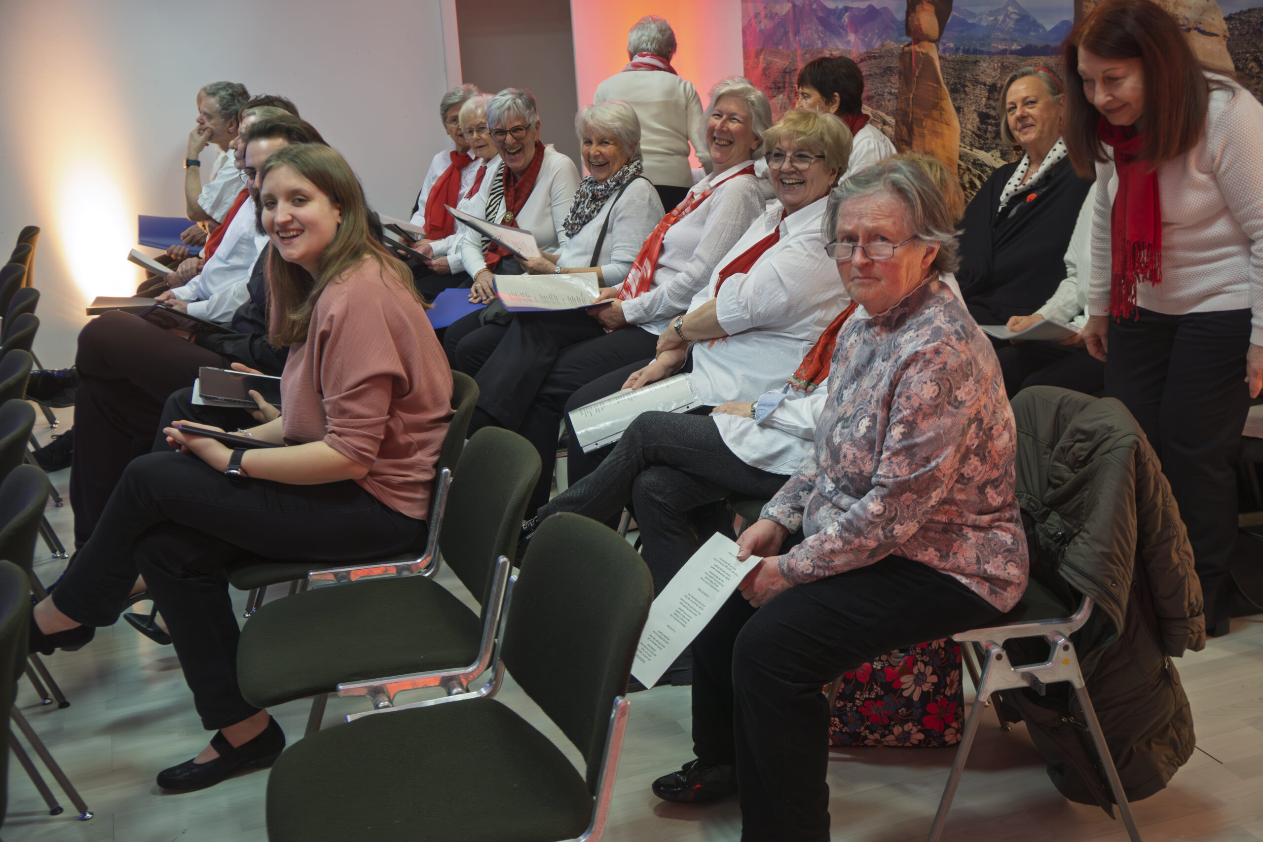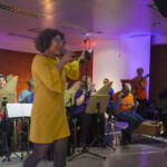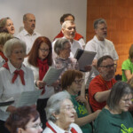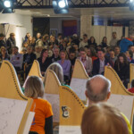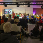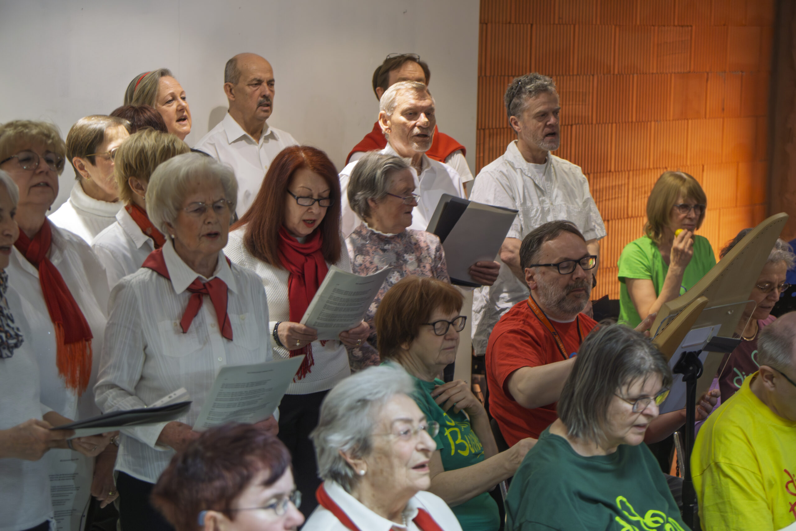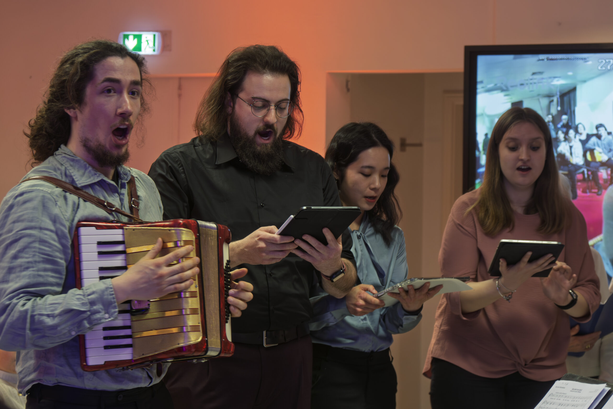 Der Clou: Dank Videobildschirmen konnten wir die jeweils andere Gruppe im anderen Stockwerk sehen und hören. So verschmolzen die Klänge über räumliche Grenzen hinweg zu einem großen Ganzen. Es war ein faszinierendes Zusammenspiel, das unsere Seh- und Hörgewohnheiten herausgefordert hat – ganz im Sinne Brechts!
