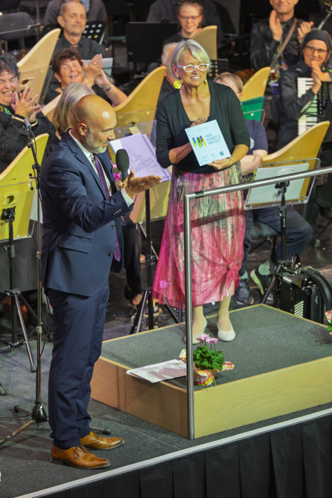 Der Moment der Übergabe am 4. Oktober hätte nicht glanzvoller sein können. Inmitten unseres gemeinsamen Konzert mit dem renommierten Polizeiorchester Bayern wurde uns die Urkunde feierlich überreicht. Es war ein Nachmittag voller Gänsehautmomente, an dem Profimusiker und unser inklusives Ensemble gemeinsam bewiesen haben: Musik ist die universelle Sprache, die uns alle verbindet.