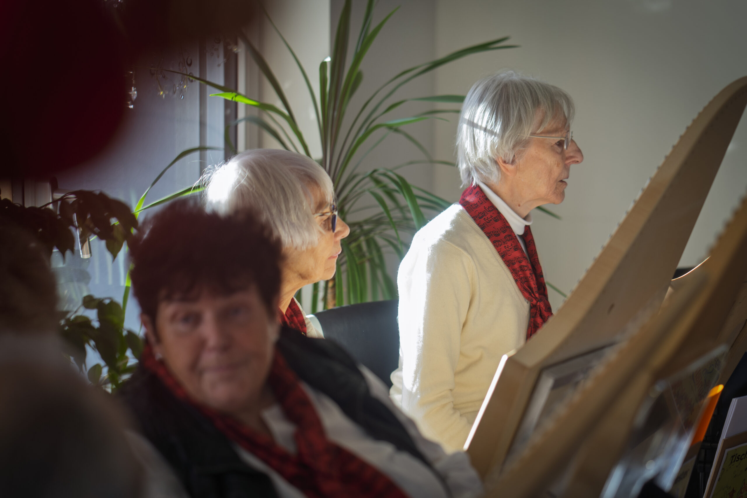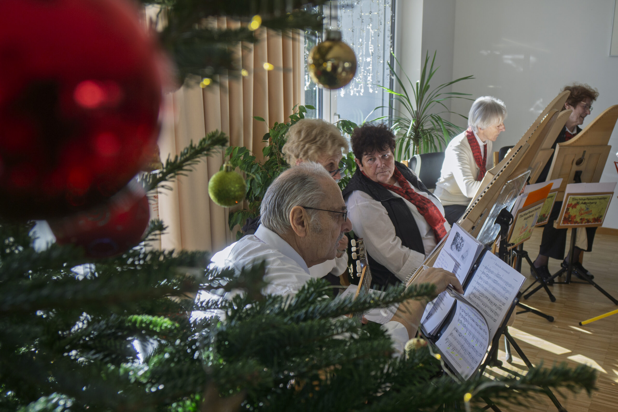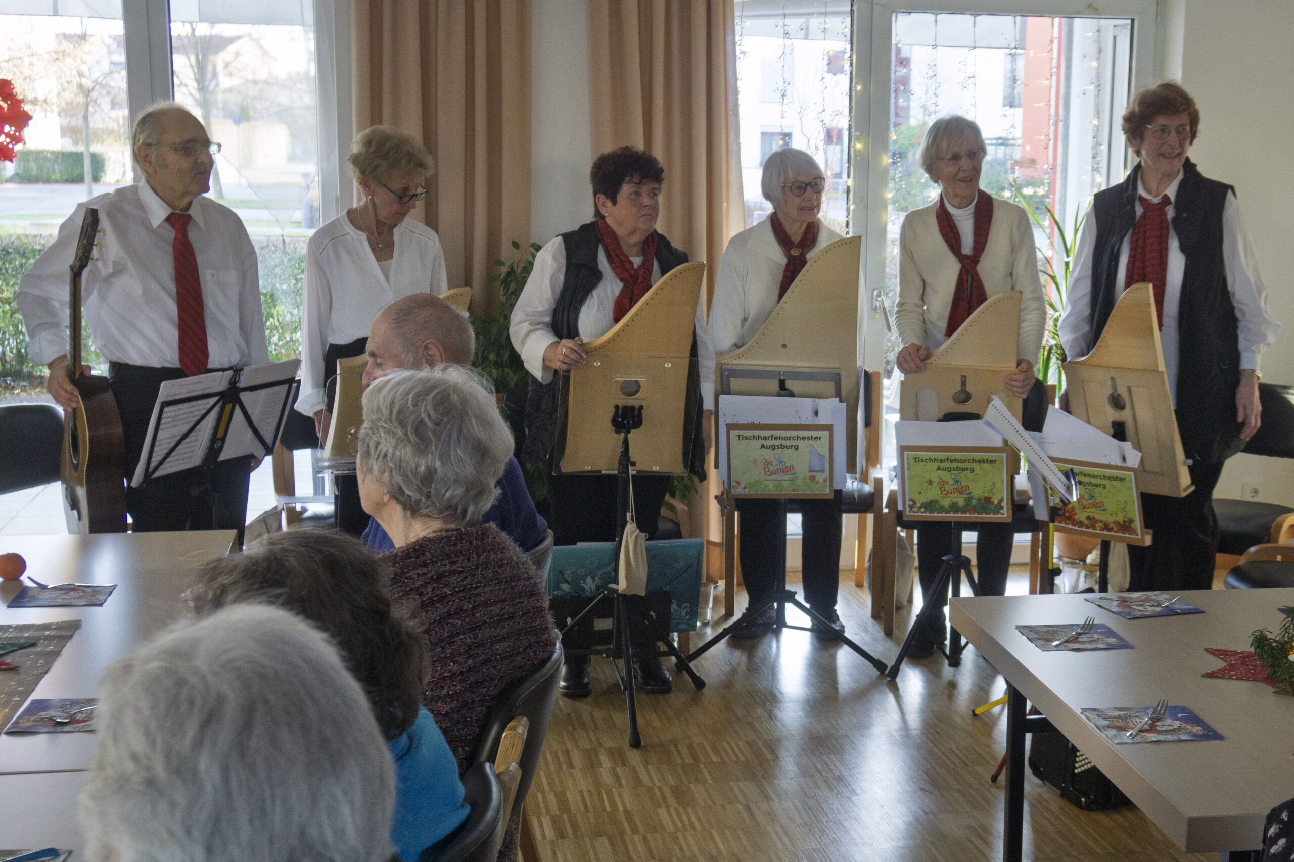Am 10. Dezember 2025 spielte ein kleines Ensemble unseres Tischharfenorchesters in der Seniorenwohnanlage Himmelreich in Göggingen.