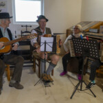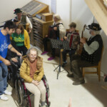Und danach ging es im Dachgeschoss weiter. Die Rollstuhlgäste wurden kurzerhand mit einem eigens dafür bereitstehenden Tragegestell hochgetragen und dann konnte die Musik schon beginnen.