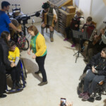 Aber vorher führten die Rollstuhlfahrerinnen und Rollstuhlfahrer aus unserem Ensemble aus Krumbach im Erdgeschoss einen kleinen Tanz auf.