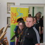 Die Bunten im großen Orchester auf der Bühne und die Bunten als kleines Ensemble an der Seitenwand neben den Zuschauern.