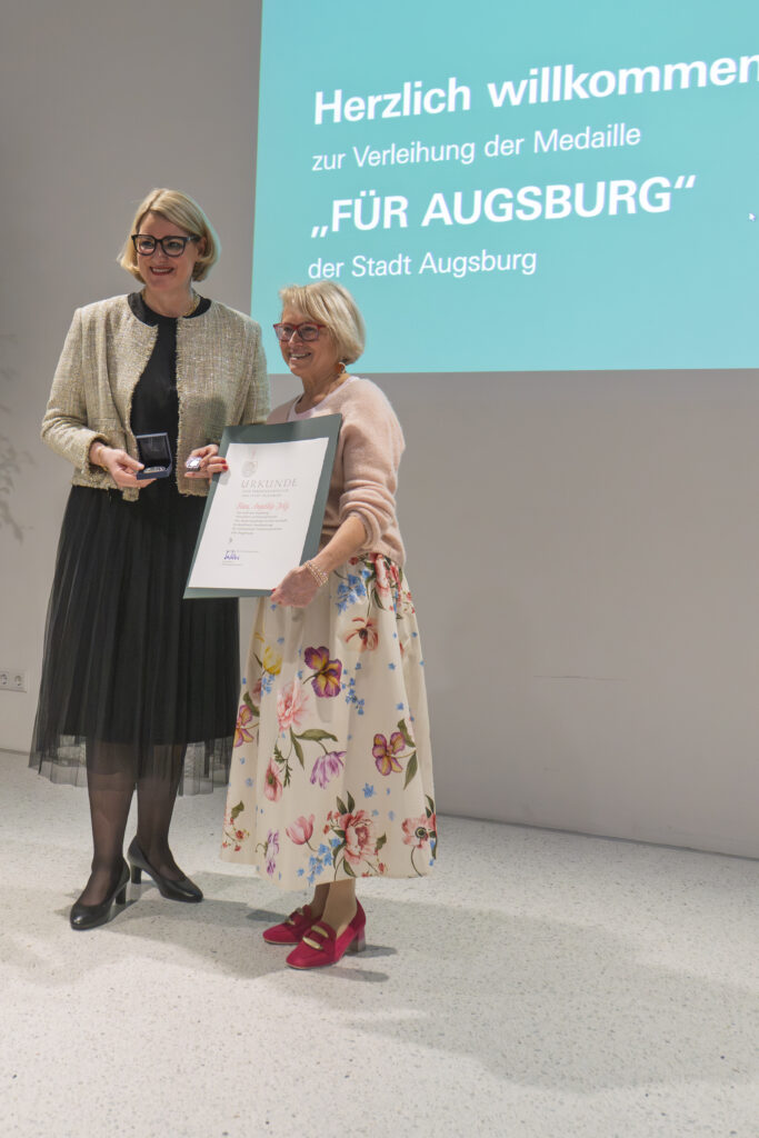 In ihrer Laudatio hob Oberbürgermeisterin Eva Weber die kulturelle und soziale Bedeutung des Projekts hervor. Die Verdienstmedaille würdigt Bürgerinnen und Bürger, die sich in besonderem Maße um das Wohl der Stadt Augsburg verdient gemacht haben. Für die anwesenden Mitglieder von „Die Bunten“ war es ein emotionaler Moment, als „ihre“ Angelika die Auszeichnung entgegennahm.