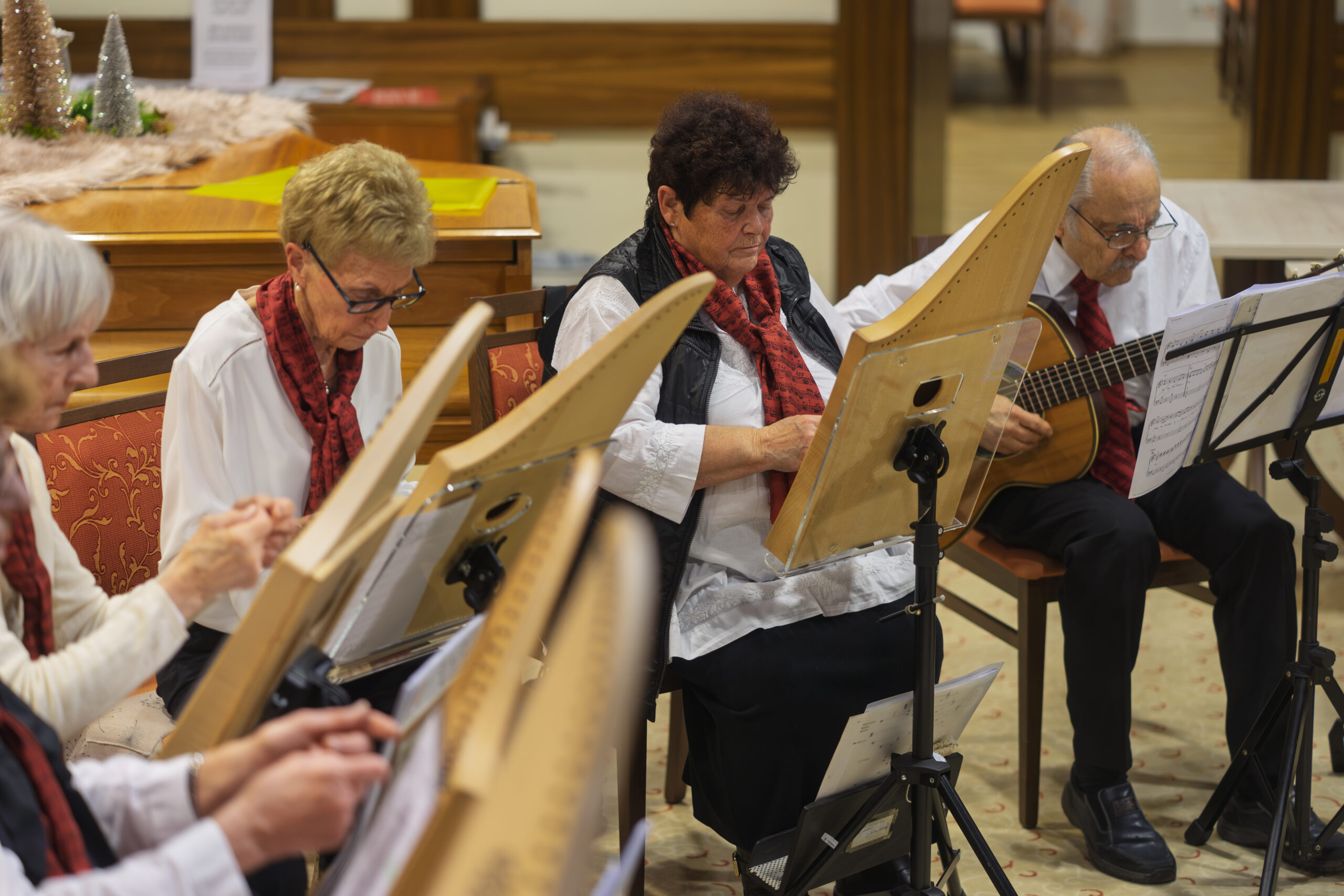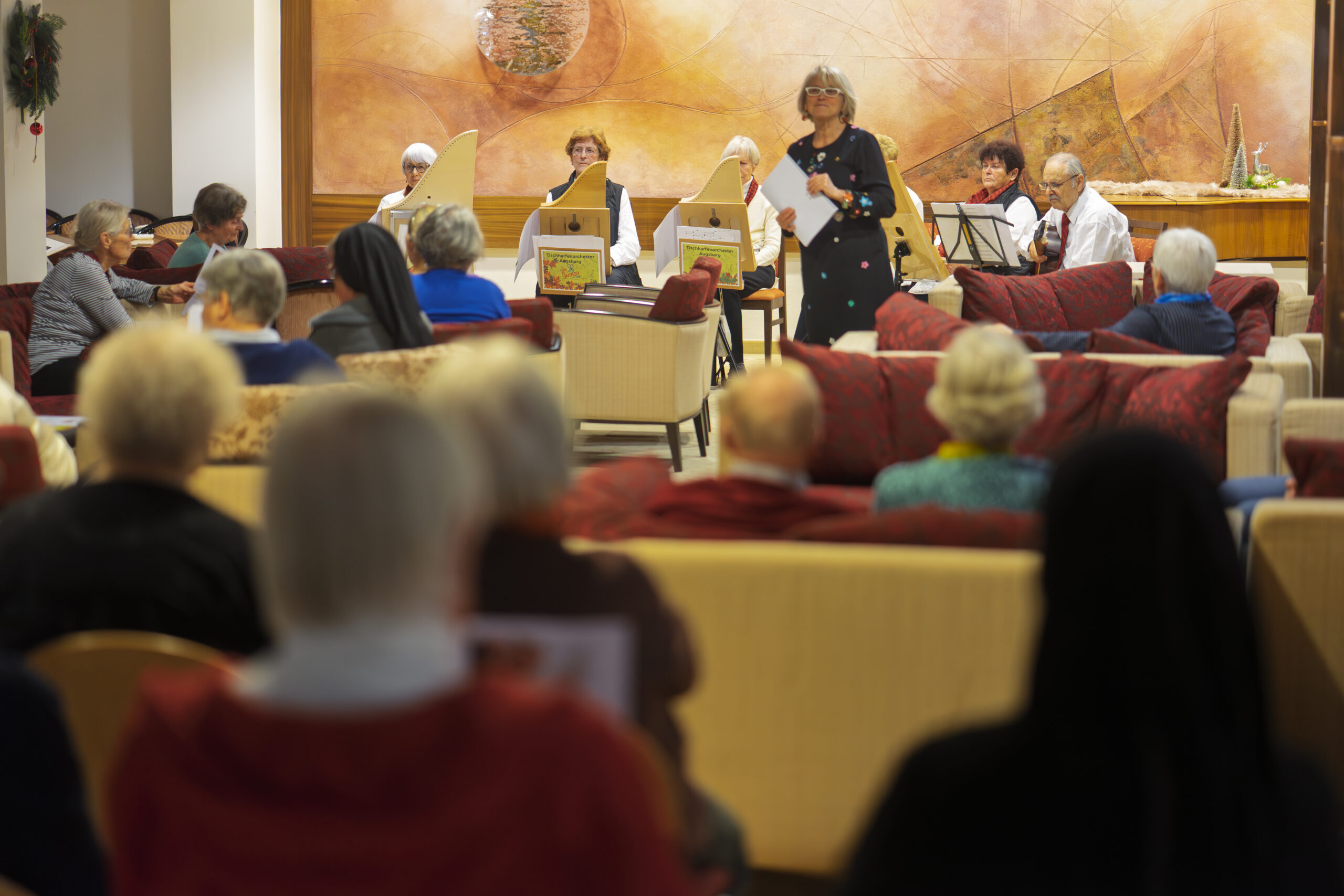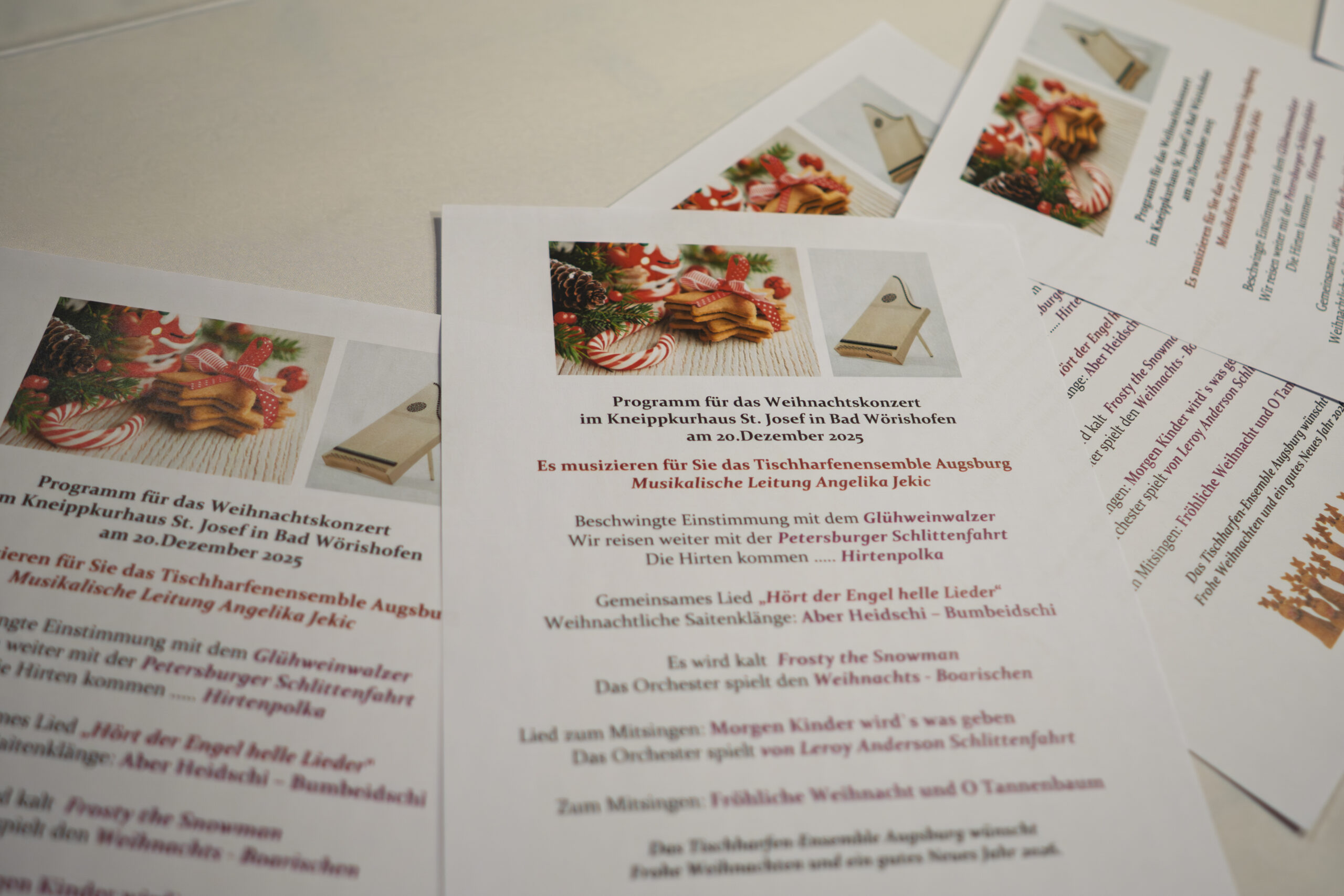 Ein kleines Tischharfenensemble trat am 20.12.2025 im Kneippkurhaus St. Josef in Bad Wörishofen auf.