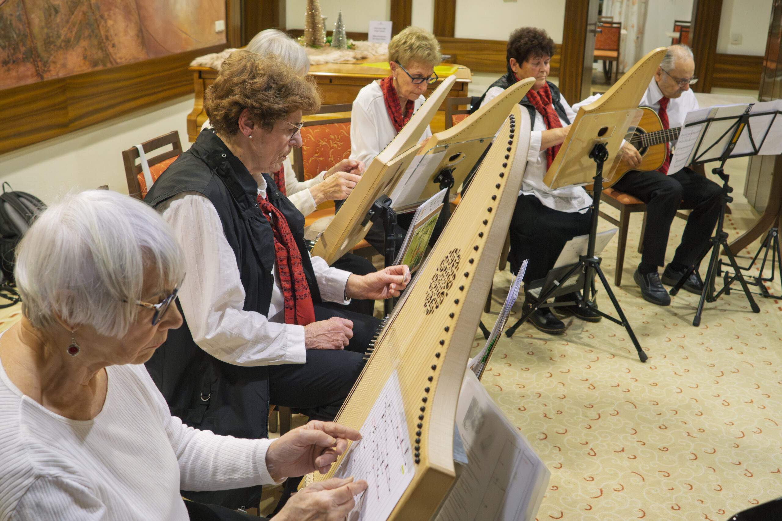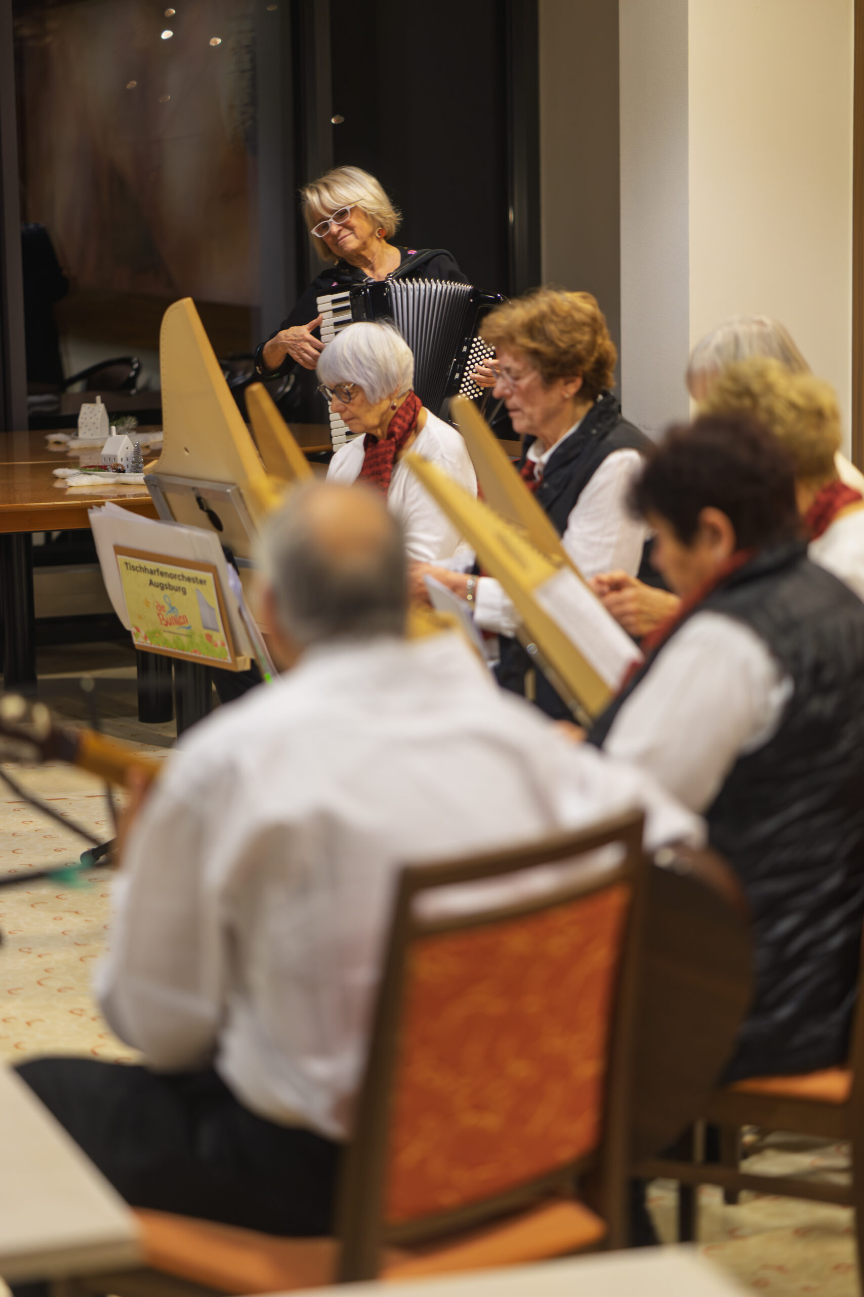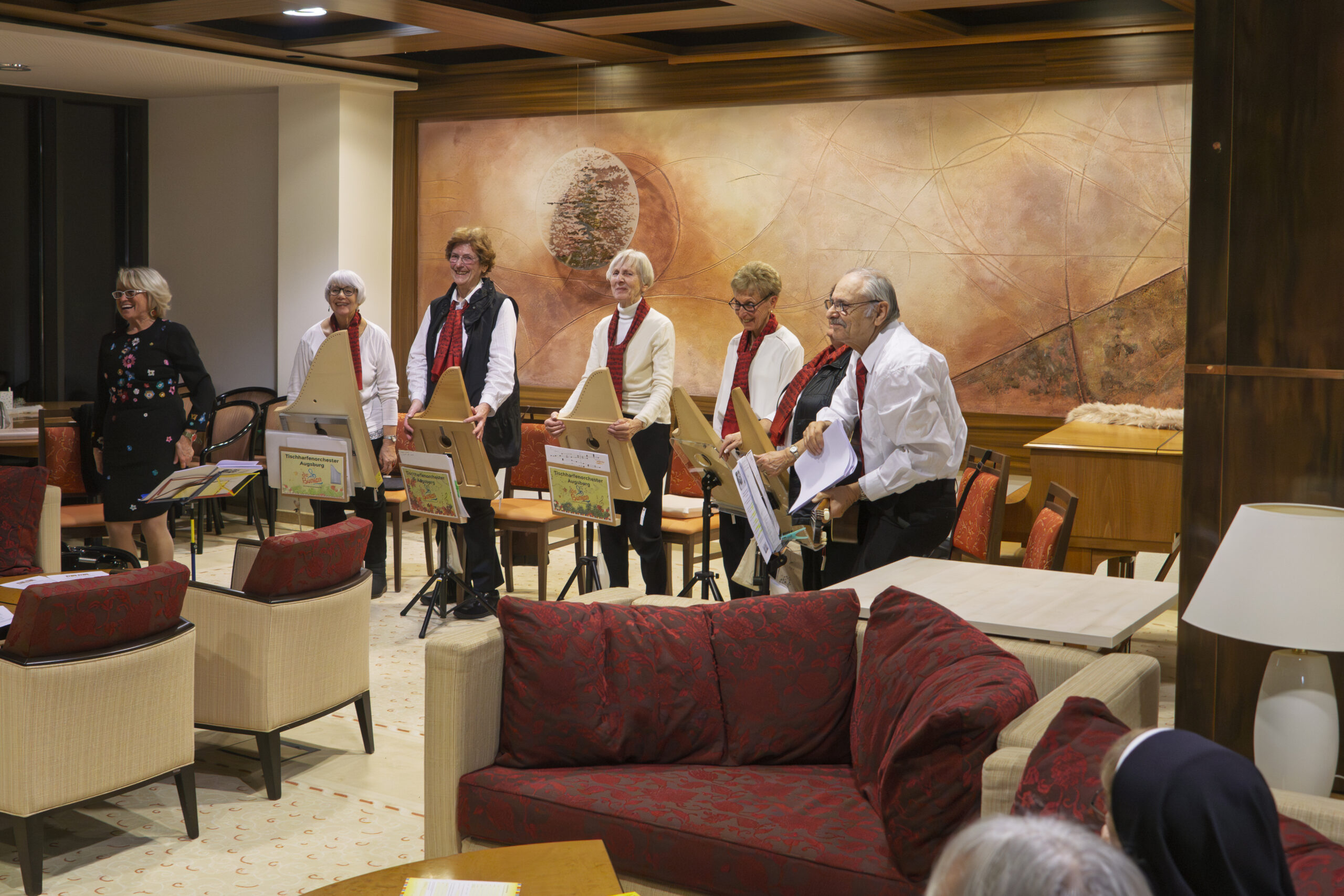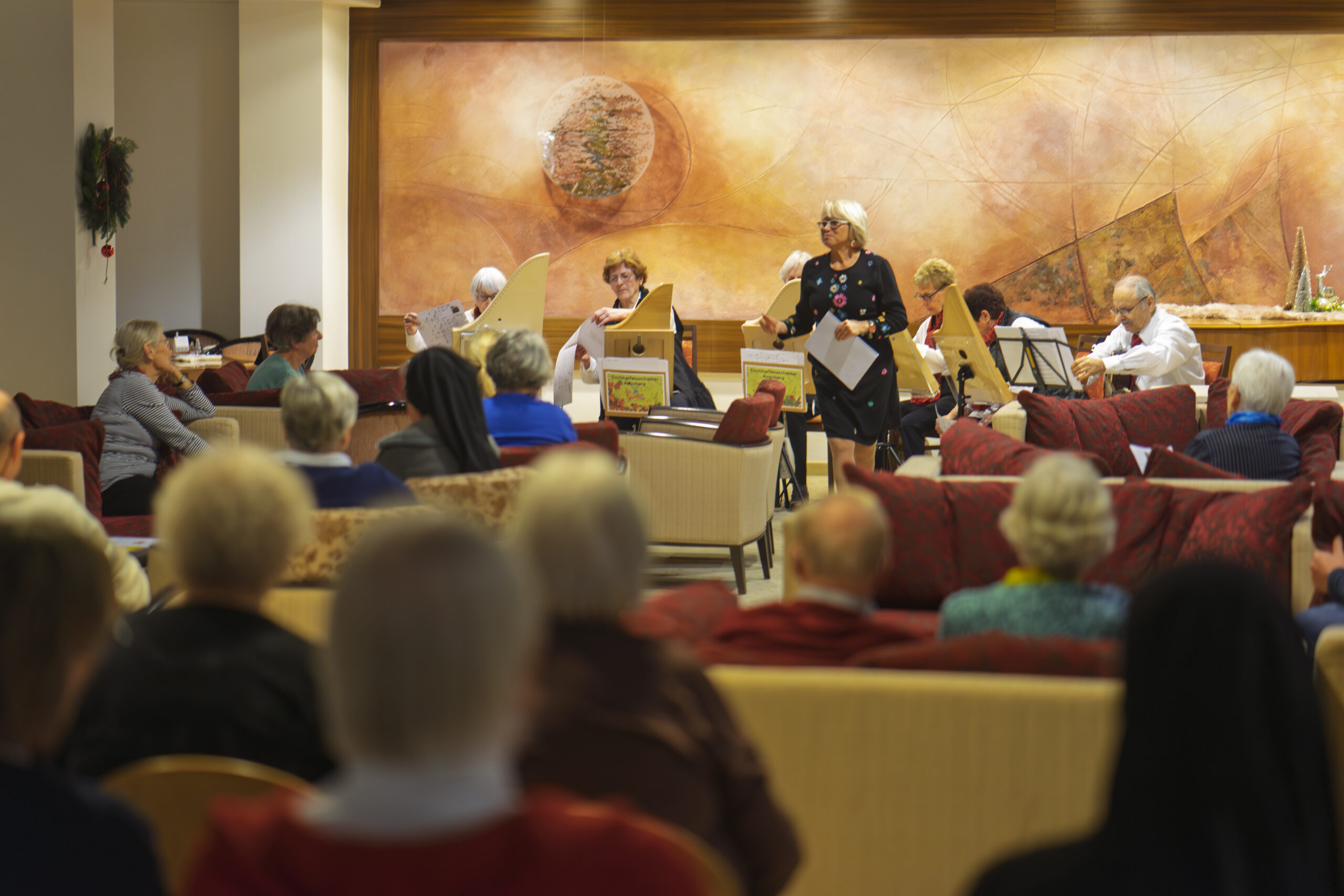 Ein kleines Tischharfenensemble trat am 20.12.2025 im Kneippkurhaus St. Josef in Bad Wörishofen auf.